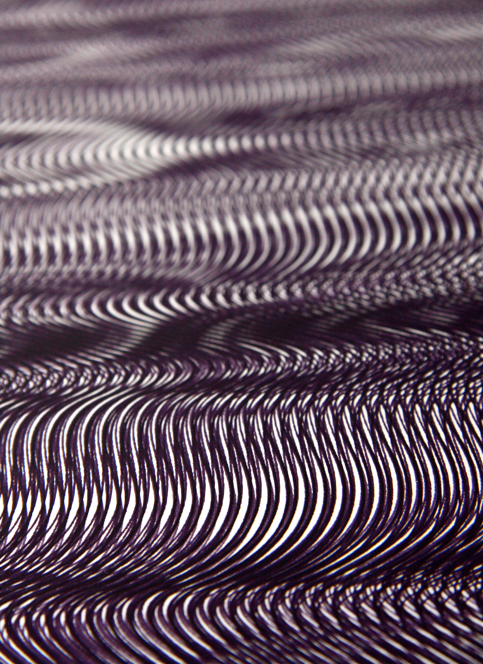 Through a process of superimposition and repetition, I employ simple mathematical and geometric devices that determine the aesthetic nature of the work. The result is a physical manifestation of the tension between the line and an underpinning system, the one thing being defined by the other. Central to my thinking is the idea of great complexity being derived from great simplicity.