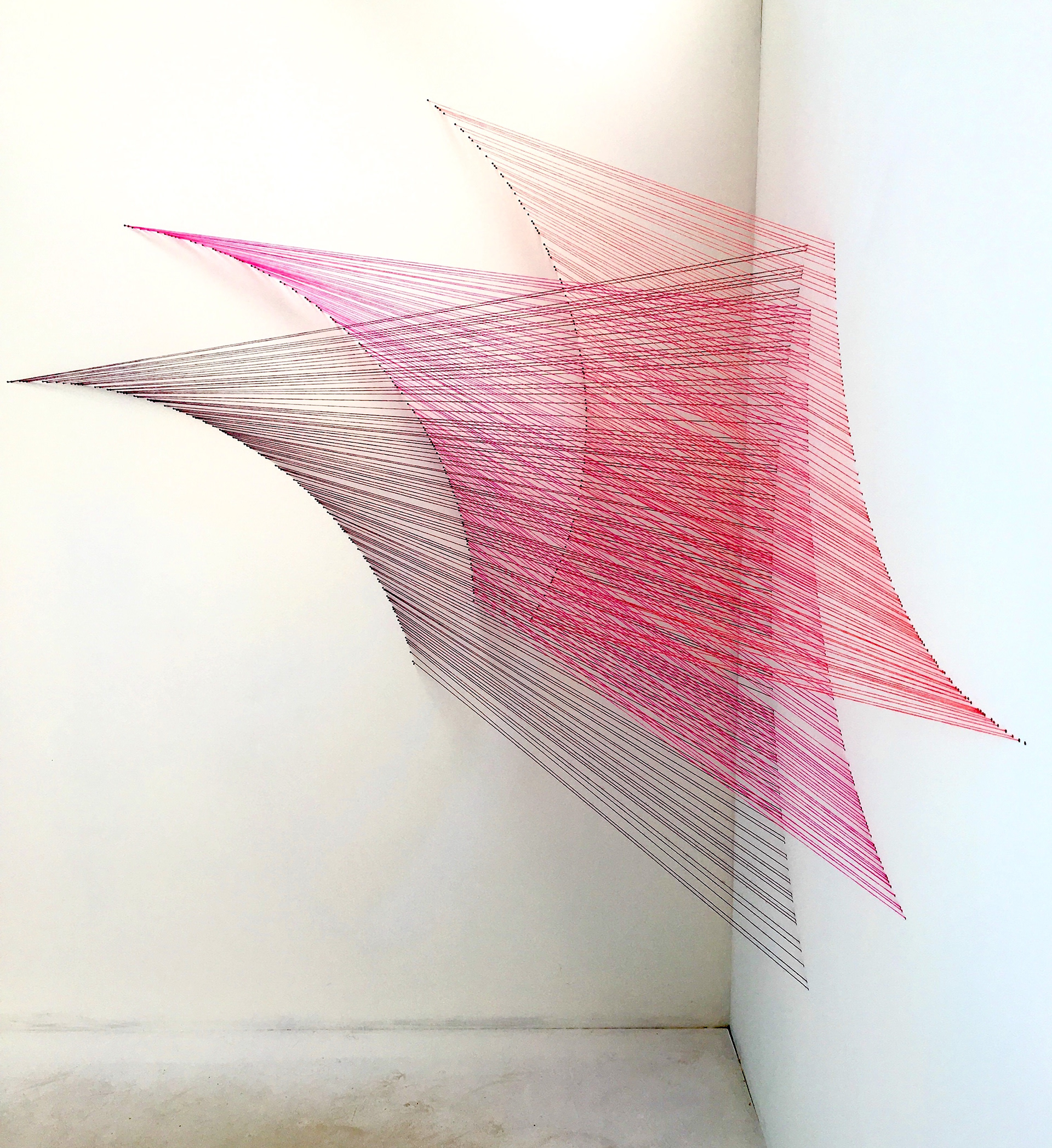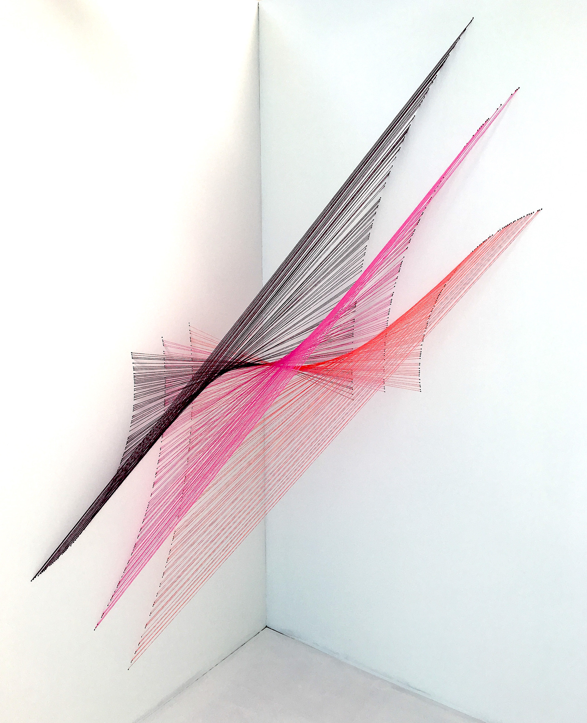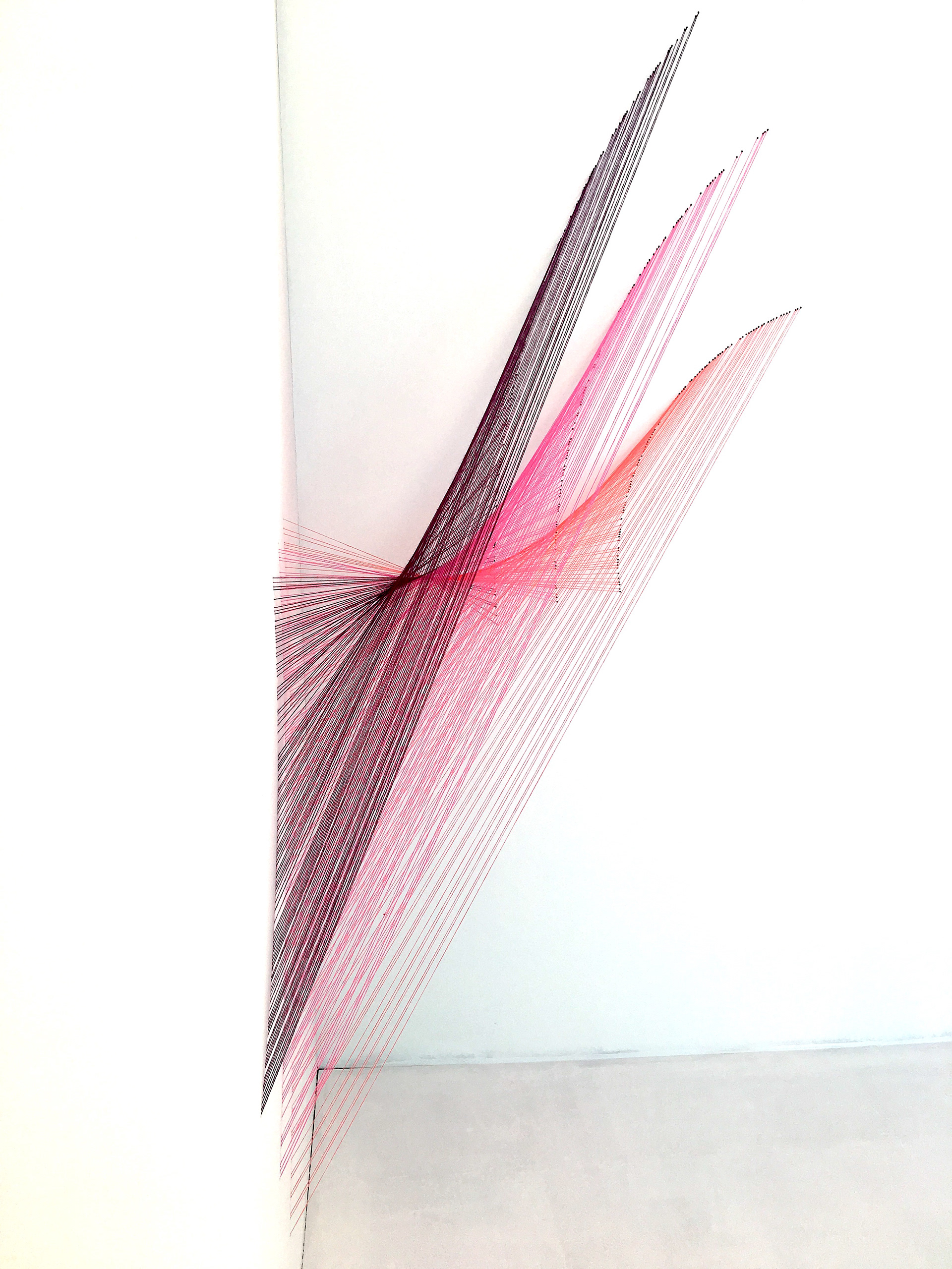 "Chromatic Tensions". thread installation, Despina Foundation, Rio di Janeiro, 2019.